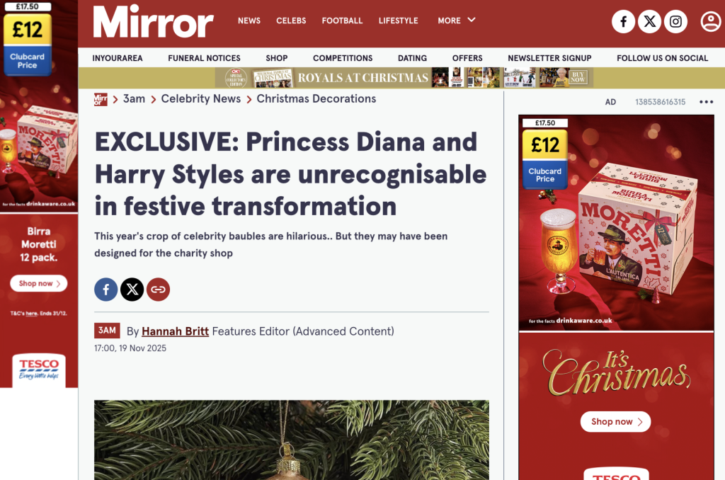 Discussing the Charm of Celebrity Baubles with The Mirror It was an absolute delight to be featured in The Mirror, sharing my thoughts on one of the most fun and whimsical trends of the festive season: celebrity Christmas baubles! The article, “Princess Diana and Harry Styles are unrecognisable in festive transformation,” dives into the cheerfully […]