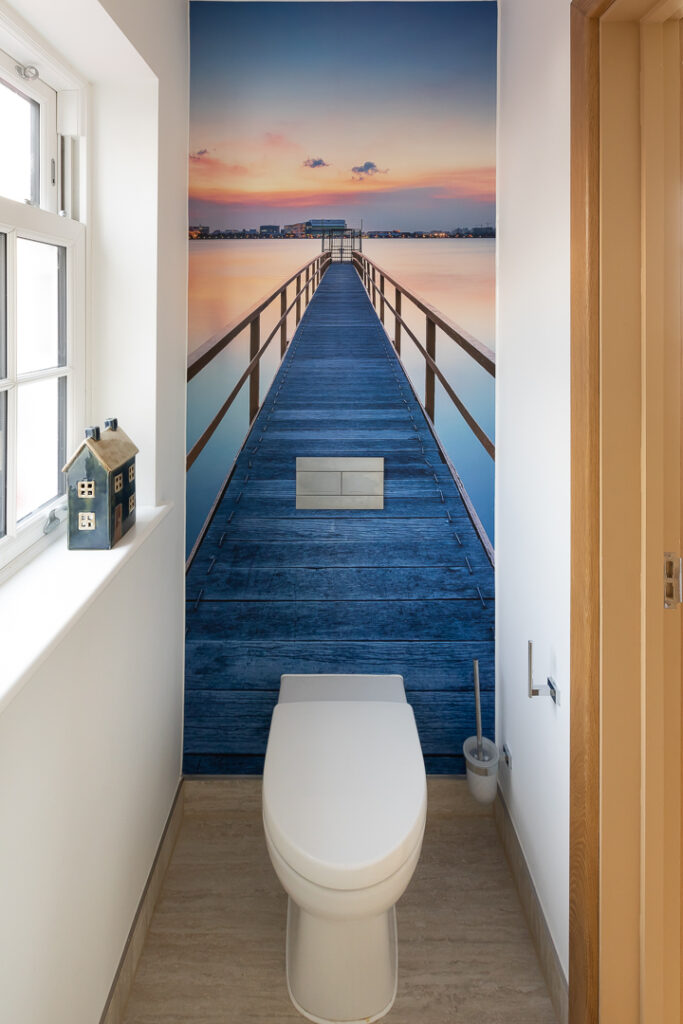 Wallpapers can be also used to add extra depth to the space and create an interesting illusion, like in this cloakroom on the coastal property.