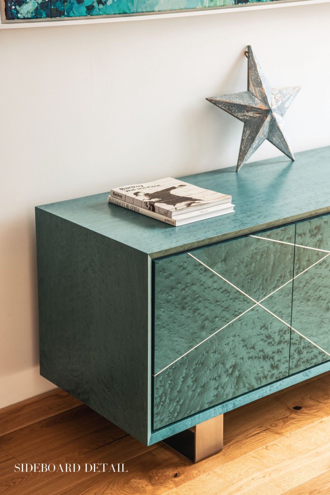 With its contemporary design and soft, inviting colours, this room is a true haven of relaxation. Imagine curling up with a good book on either one of the sofas or on a bench, sipping a cup of tea or coffee on a Sunday afternoon… The room features more of the stunning bespoke joinery meticulously crafted by Chardome Bespoke Furniture. My favourite part is a hidden bar- if you want to know more, watch the video here. It also features our bespoke coffee table/ottoman that you can buy in our shop.
