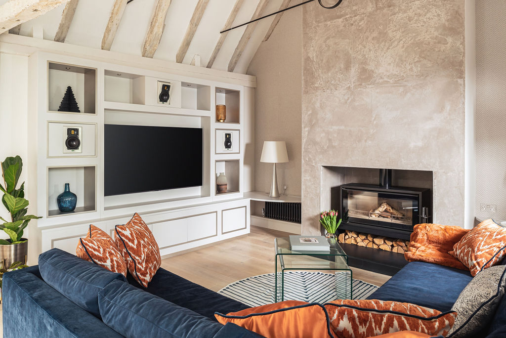 To create a contemporary feel in originally a very non- contemporary space, we needed to incorporate many clean lines, and as you can see, this is how the joinery has been crafted. The main sitting area joinery features our clients’ bespoke speakers that you can also have custom made to fit your space the sound that comes out of them is absolutely brilliant- you can find all technical details on the Unity Audio website.