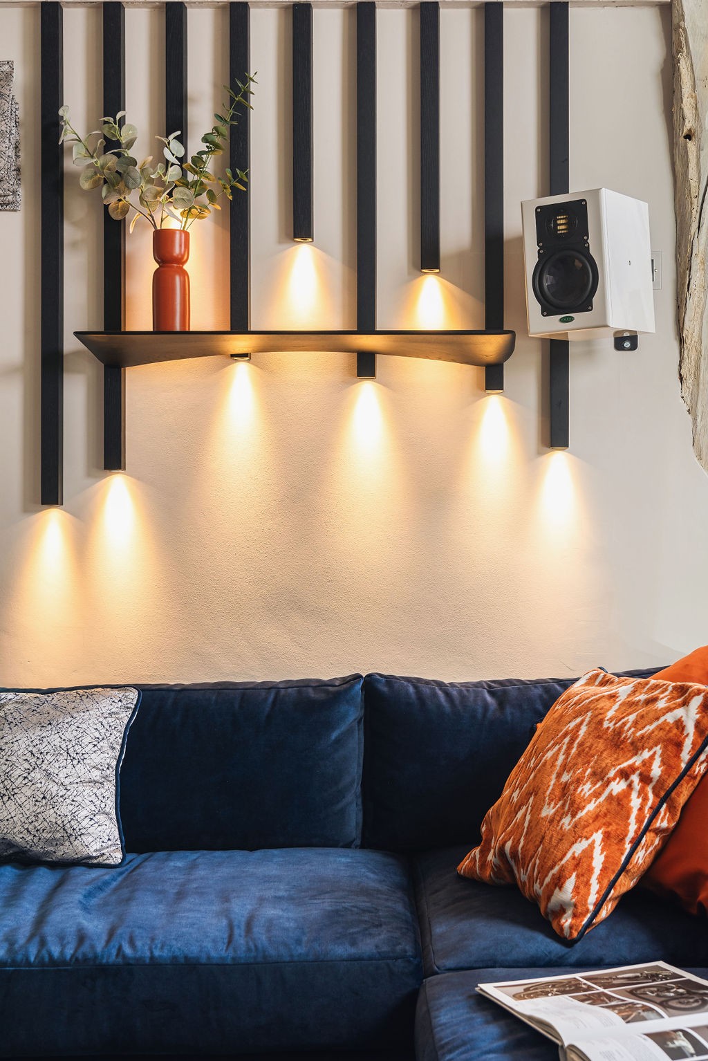 Since we had to incorporate a lot of audio equipment to create that perfectly balanced audio experience, we felt leaving the top part of the joinery open to display beautiful objects (among the speakers) was the right direction to go. We think the effect is absolutely stunning.