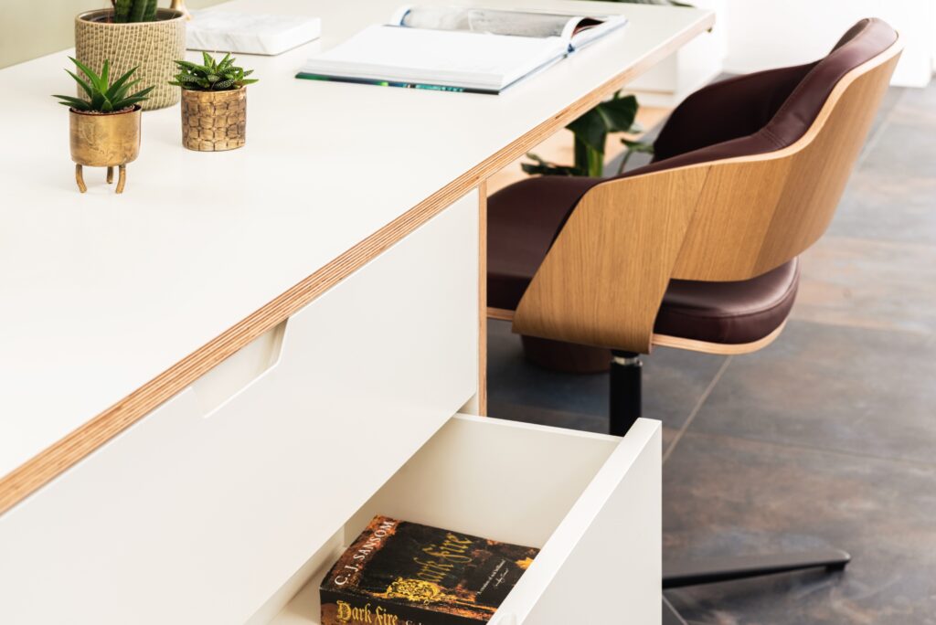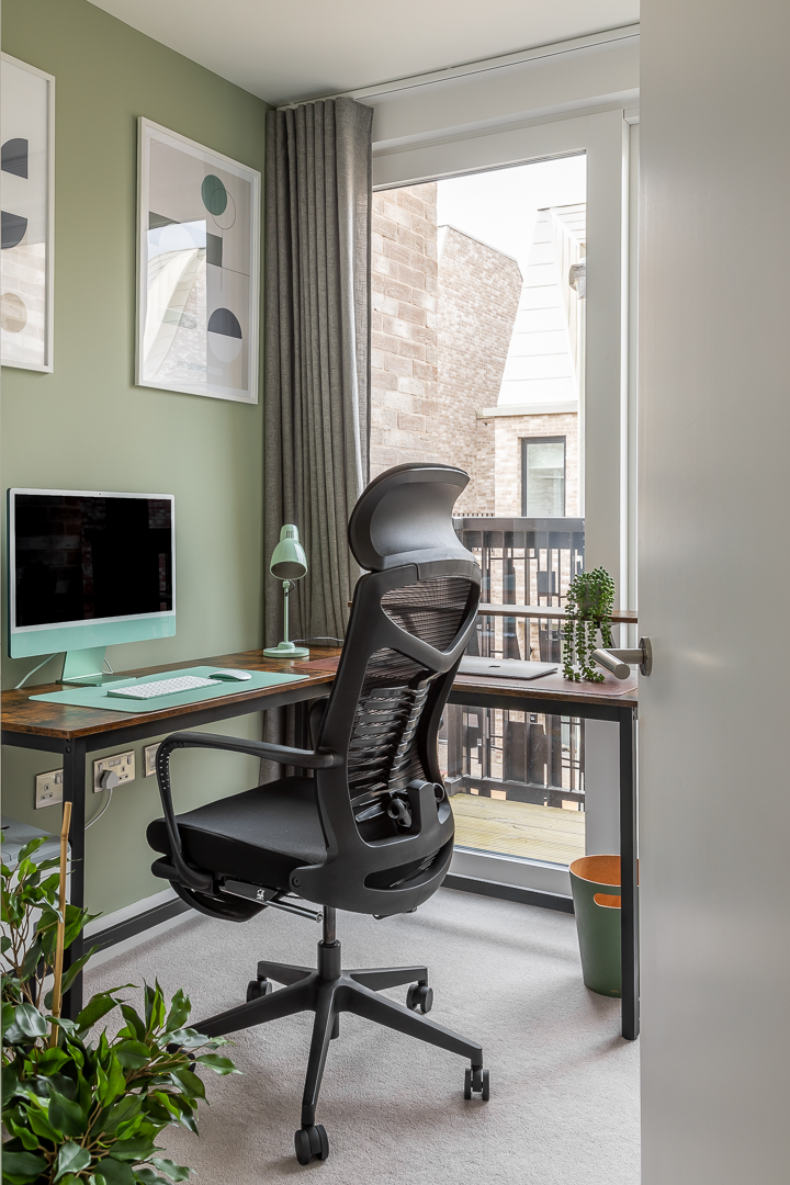 Ergonomic desk and office chair at the foundation of creating a productive home office space- everyone should check the height of the desk you have in mind and ideally get an adjustable office chair with a good back support. The screen should be at approximately 750mm from your face at the eye level- if you take that as a rule, you should measure whether the desk would allow for this. A typical desk height is 750mm but you might need a desk that’s a bit taller or slightly shorter, depending on your height. Some desks have drawers underneath which might be uncomfortable for some people.