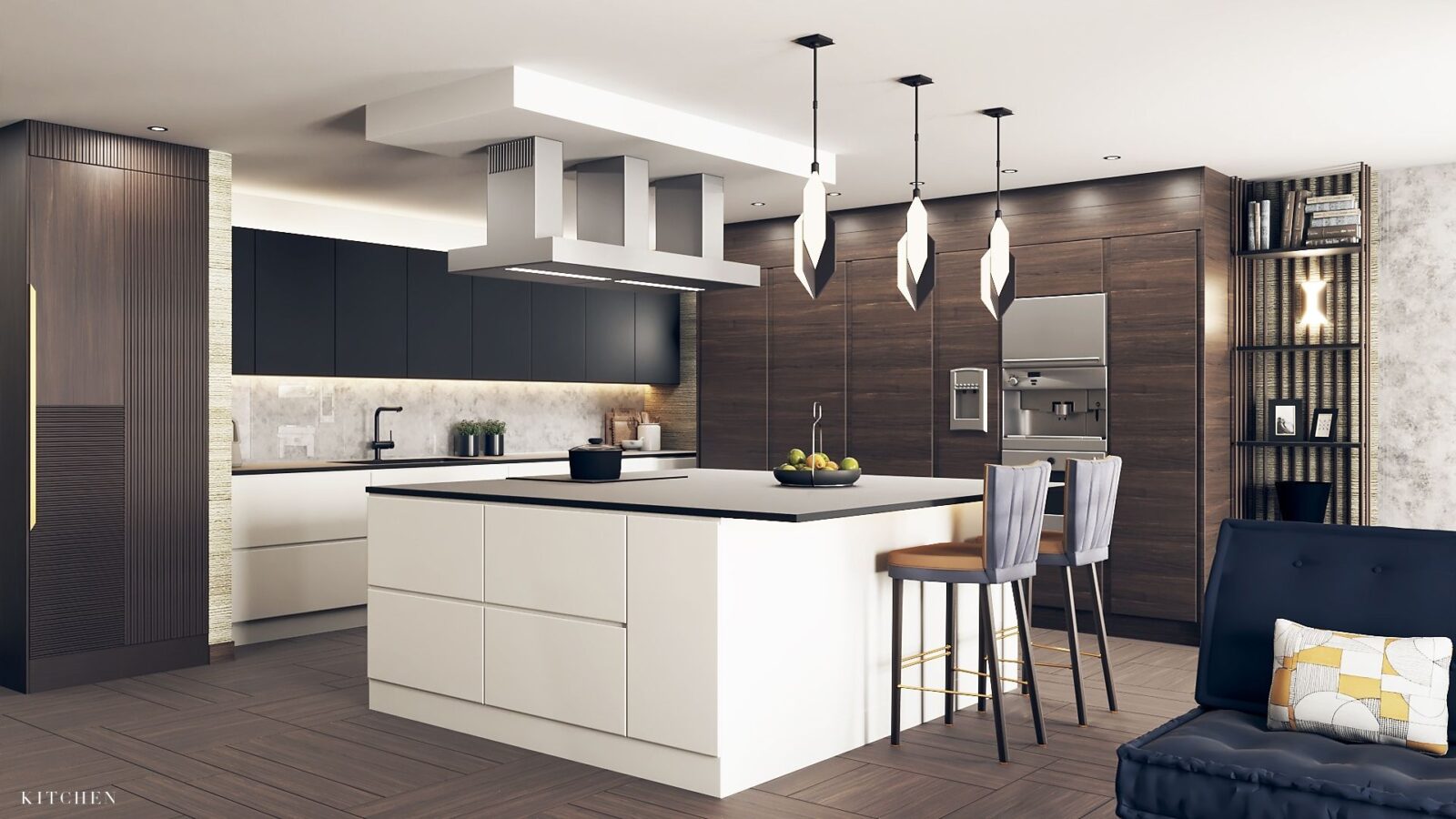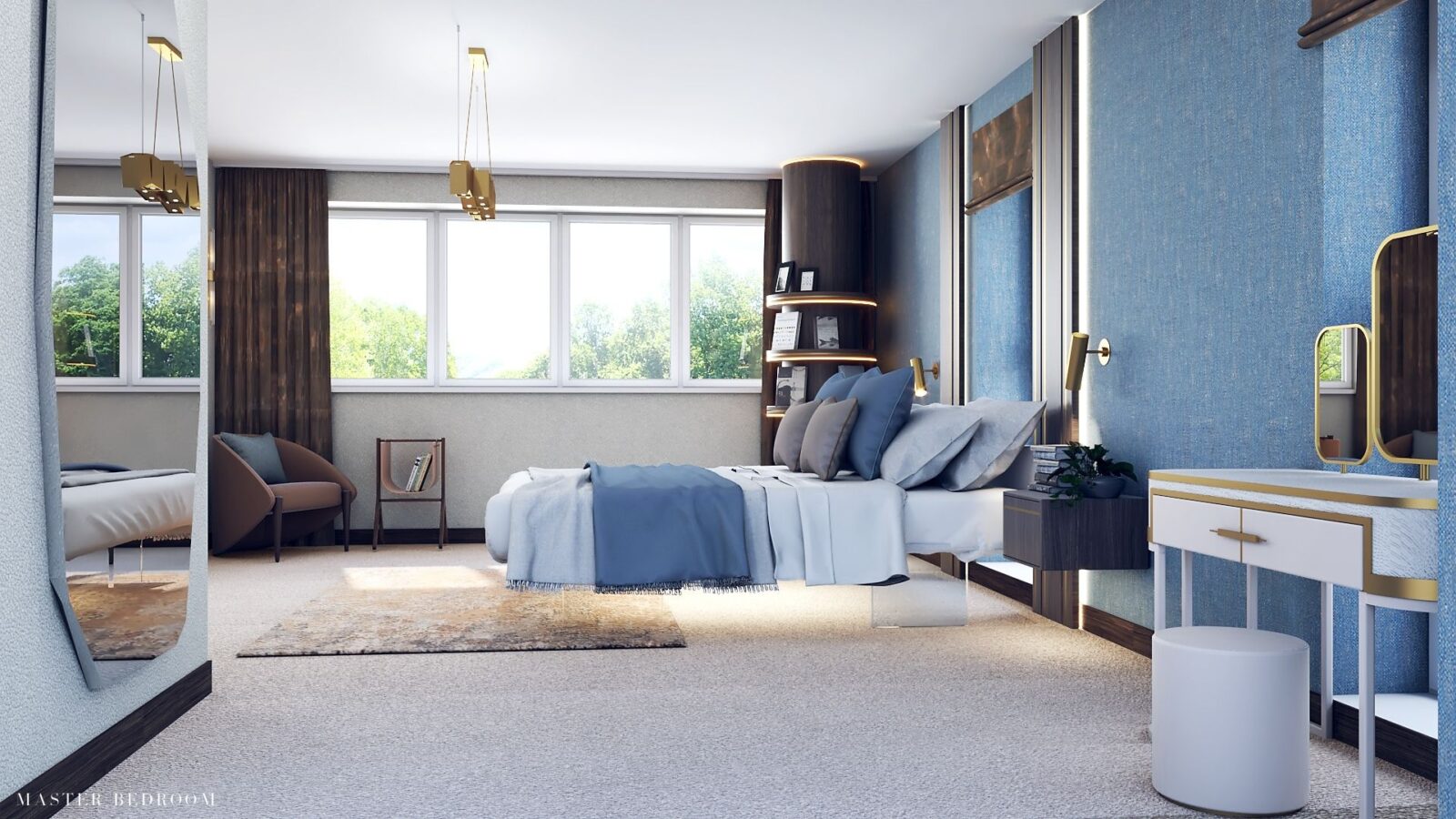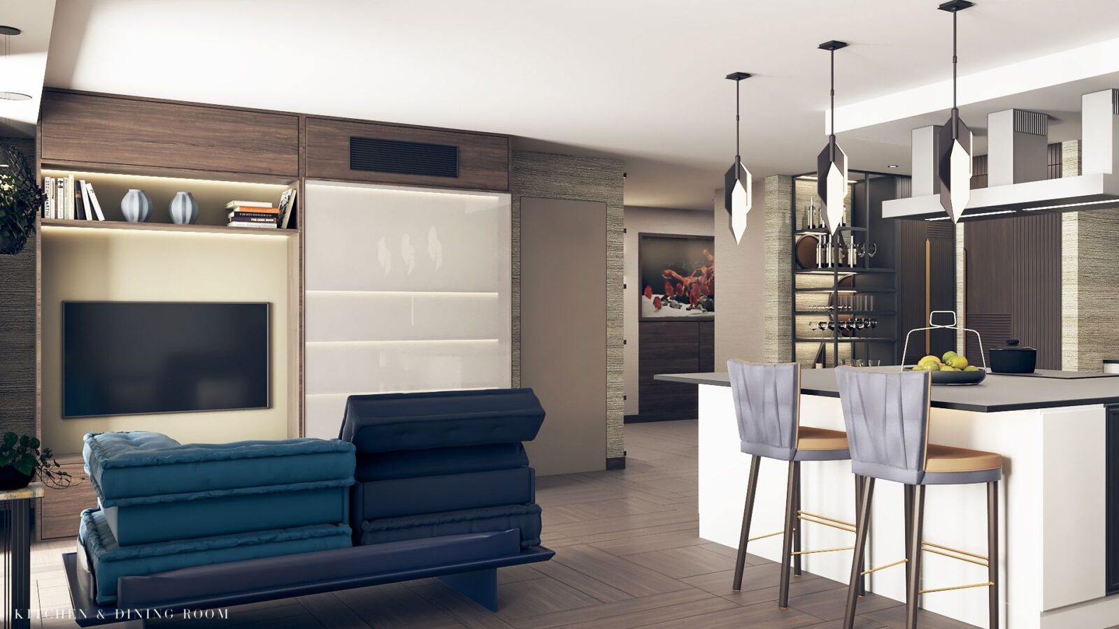 What we did: Working alongside the architects, we helped out client completely renovate the existing floor of the apartment and the newly converted top floor. We worked together with a Lighting Designer, Home Automation specialists and others to create a cohesive scheme. This penthouse is part of the popular Grosvenor Waterside development, and benefits from views of the docks, river and London eye.